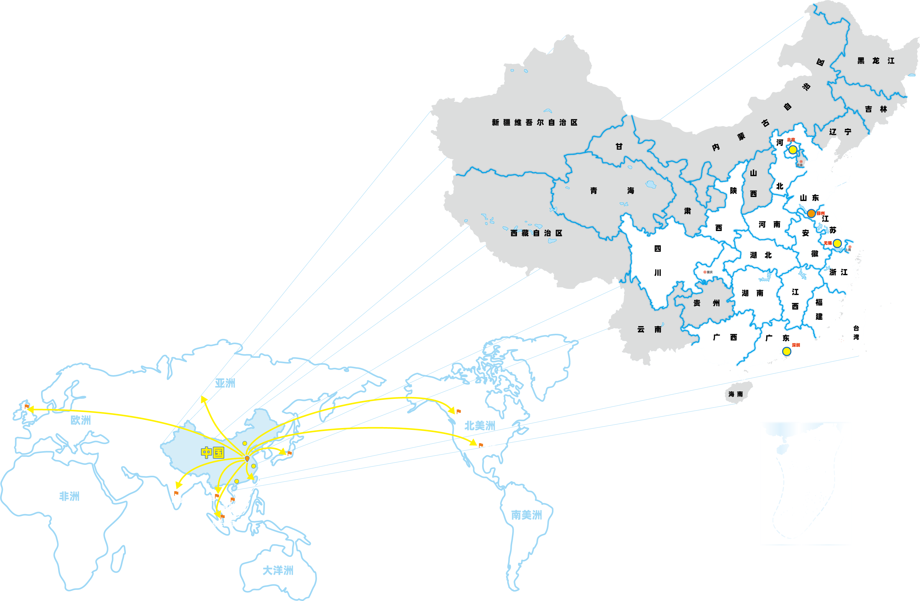 50+国家和地区客户分布,立足中国,遍布全球,服务世界